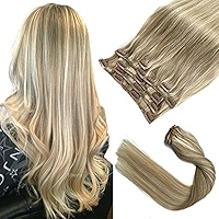 Amazon Com Clip In Hair Extensions Real Human Hair Dirty Blonde Balayage Blonde Highlights Real Hair Extensions Clip In Human Hair 7 Pieces 70g 15 Inch Straight Double Wefts Remy Human Hair