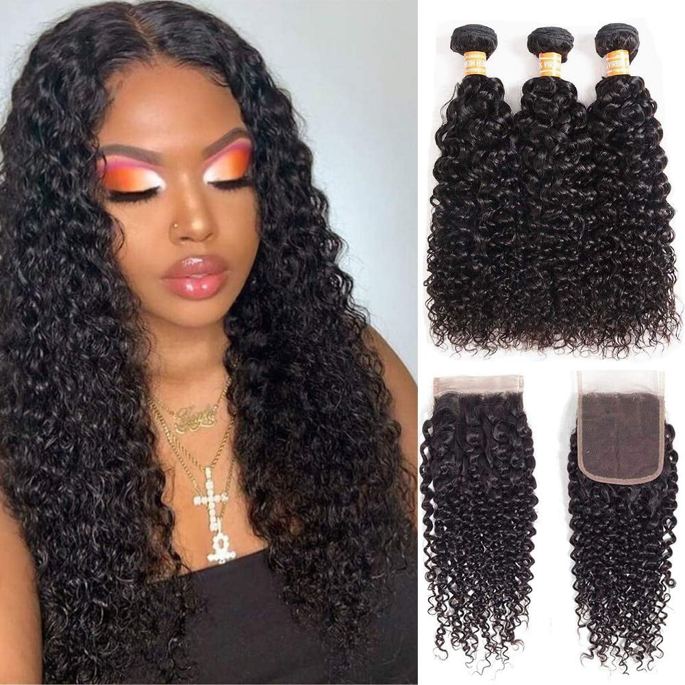 Malaysian Water Wave Human Hair Bundles With 4x4 Lace Closure Wet And Wavy Bundles With Closure Water Curly Weave Human Hair With Closure 18 20 22 16 U2018 4x4 Lace Closure Walmart Com